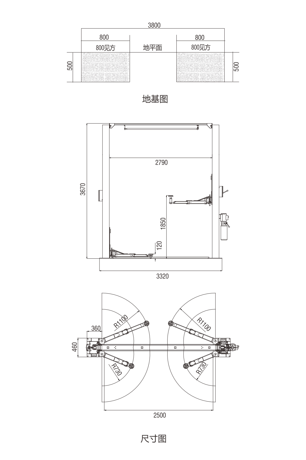 8.支臂采用兩節(jié)、三節(jié)設(shè)計(jì),調(diào)節(jié)范圍更大,適合不同的汽車底盤,三節(jié)支臂選配安裝。
