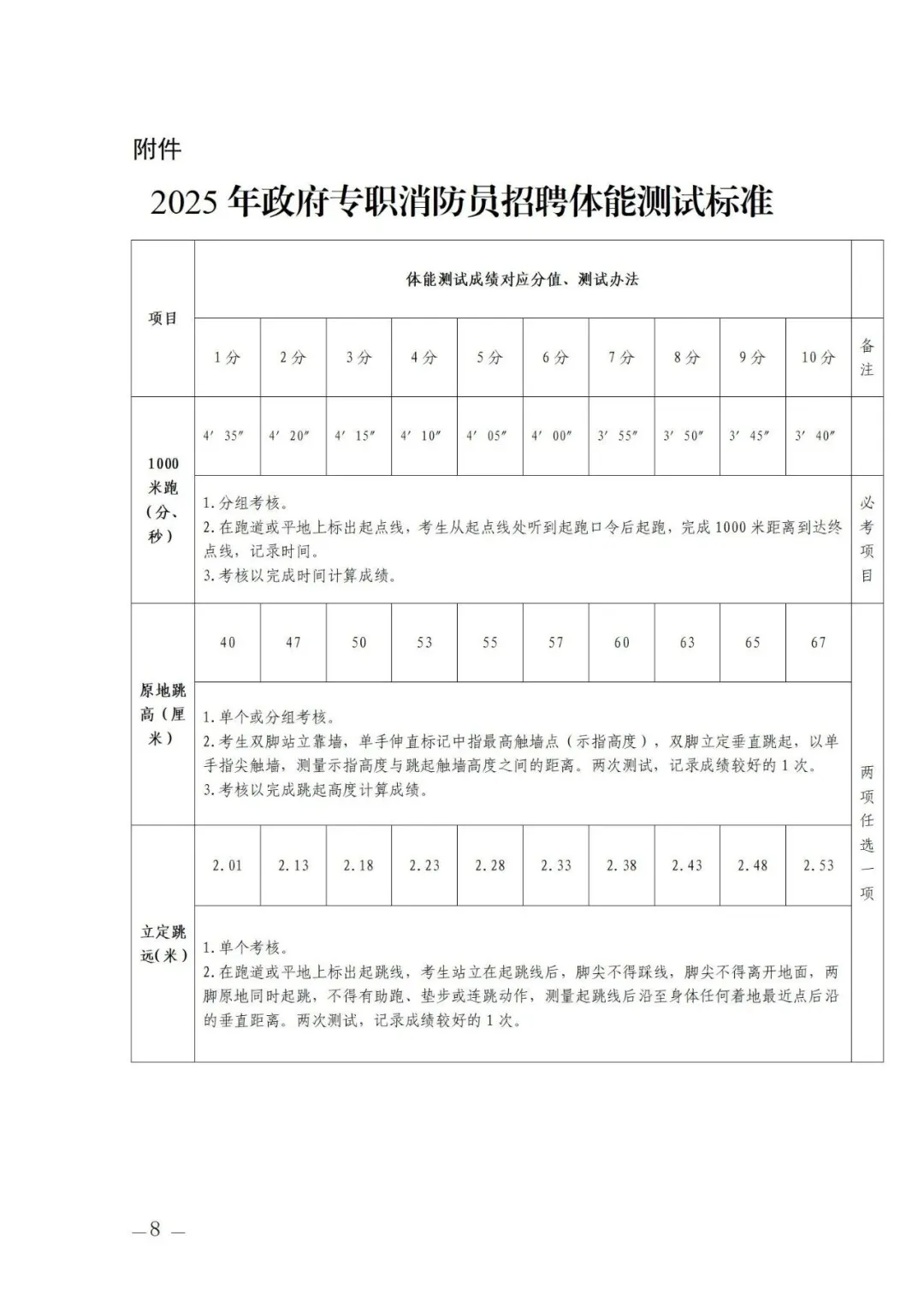 注意事項(xiàng):應(yīng)聘人員須參加體能測試,并當(dāng)場簽訂《天等縣消防救援大隊(duì)政府專職消防員招聘體能和崗位適應(yīng)性測試招聘對象承諾書》,體能測試有兩項(xiàng)及兩項(xiàng)以上不得分的視為不合格(標(biāo)準(zhǔn)參照附件)。未按時參加或因身體原因無法測試者,視為自動放棄。