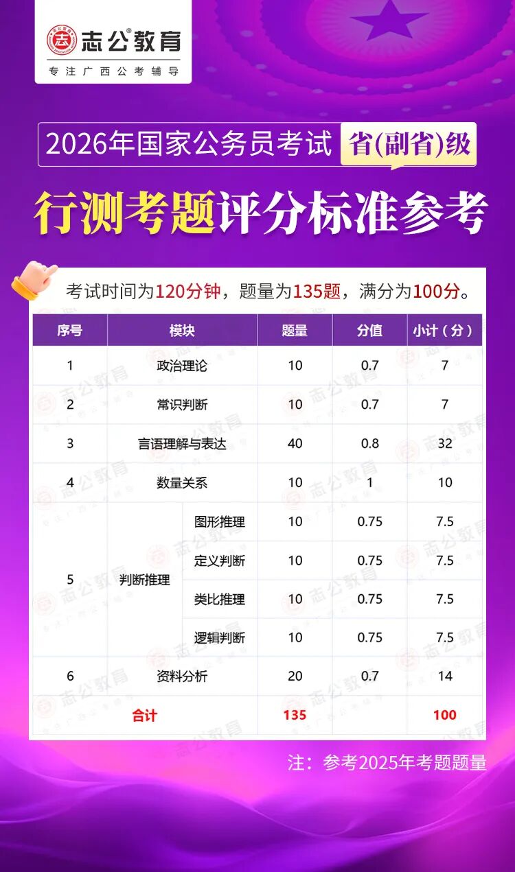 無(wú)論報(bào)名人數(shù)是否會(huì)增加,提升自身實(shí)力才是應(yīng)對(duì)2026年國(guó)考的關(guān)鍵。行測(cè)作為國(guó)考公共科目筆試的核心模塊,不僅分值占比高(通常為 100 分),更是考生之間拉開分差的關(guān)鍵戰(zhàn)場(chǎng)。它并非單純考查知識(shí)儲(chǔ)備,而是通過言語(yǔ)理解、判斷推理、數(shù)量關(guān)系、資料分析、常識(shí)判斷、政治理論六大板塊,綜合評(píng)估考生的信息處理速度、邏輯思維能力、應(yīng)急決策水平等綜合素質(zhì)。